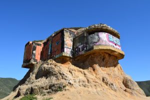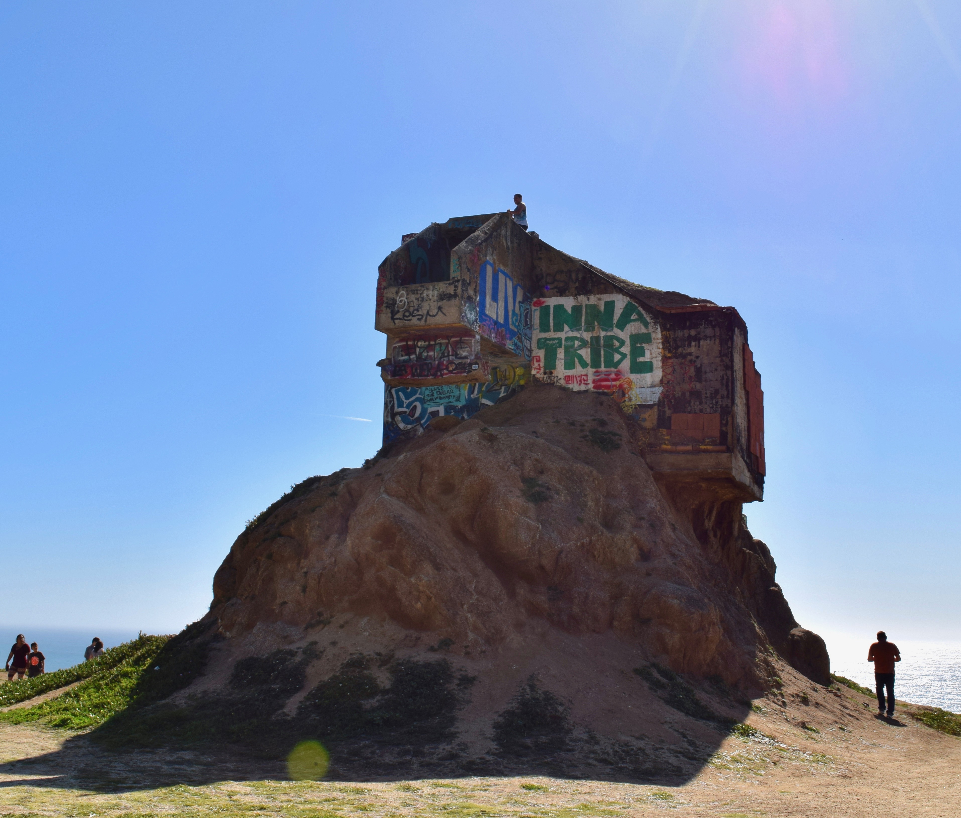 During World War II the bunker was created to keep an eye out for enemy ships. In 1949 it was no longer in use and abandoned. It sits on the mound overlooking the beautiful coast and ocean.